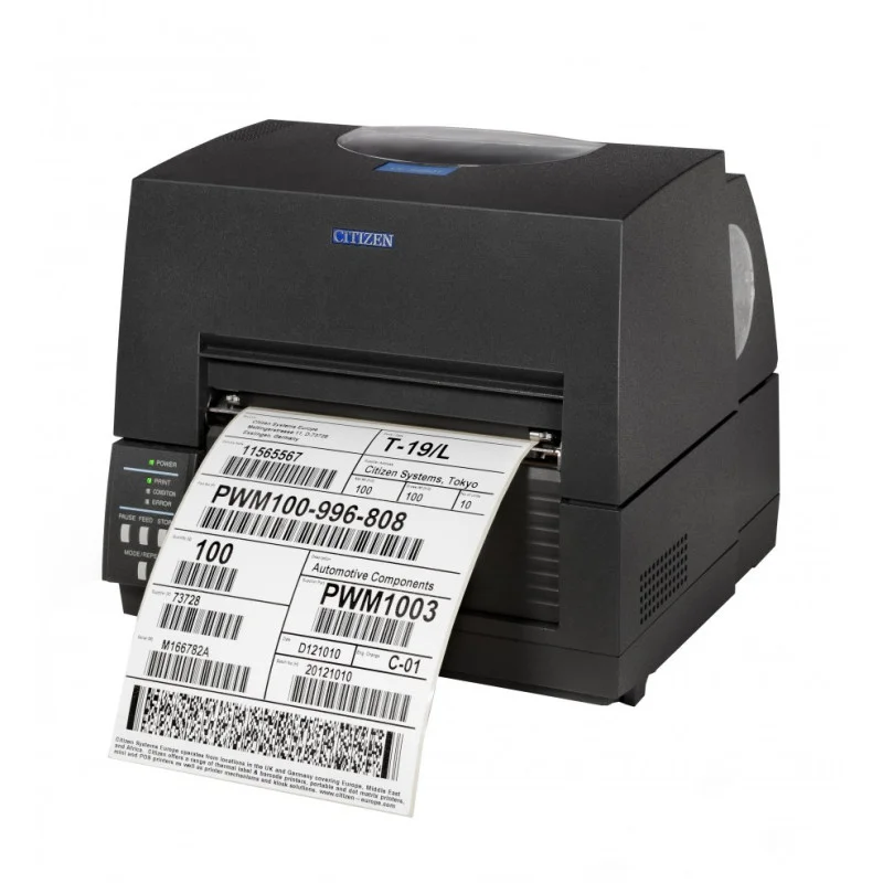 Citizen serii CL-S6621 to zbudowana na bazie modelu CL-S621 drukarka etykiet o szerokości wydruku 6" (168mm) zapewnia absolutnie profesjonalną produkcję etykiet, szarf, wszywek nylonowych, tabliczek znamionowych i biletów przy użyciu wydruku termicznego lub termotransferowego. To rozwiązanie w połączeniu z wysoką jakością wykonania gwarantuje elastyczną integrację w niemal każdej aplikacji.