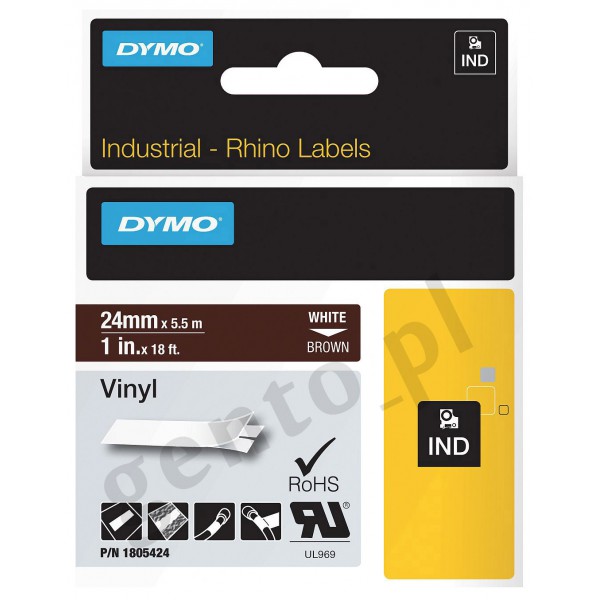 1805424, taśma DYMO, przemysłowa, typ IND, WINYLOWA, taśma brązowa, nadruk biały, szerokość 24mm