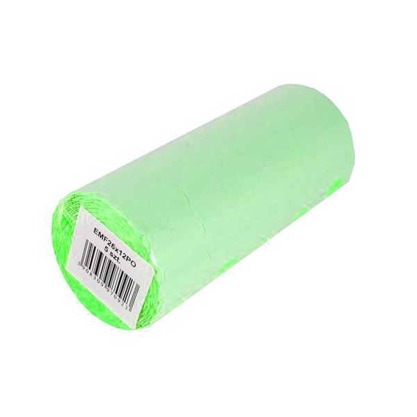 W tej ofercie kupujesz zgrzewkę zawierającą 5 rolek. Każda rolka ma 900szt. etykiet o rozmiarze 26x12 prostokątne z falką. Przeznaczone są do metkownic jednorzędowych.