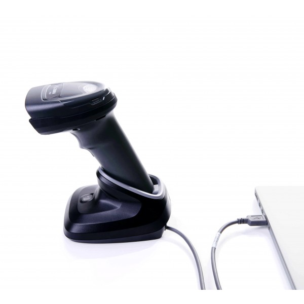 Skaner DS2278 może pracować bezprzewodowo zarówno przy użyciu dedykowanej bazy jak i bezpośrednio z innym urządzeniem Bluetooth (np. tablet). Optyka typu imager czyta kody 1D i 2D. Spełnia normę IP42.