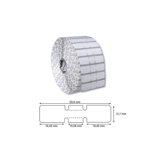 Etykiety termotransferowe, jubilerskie ZEBRA. Typ 4000T, foliowe (polipropylen), kolor biały, błyszczący. Są to etykiety do zadruku których potrzebna jest kalka żywiczna, albo woskowo-żywiczna. Etykiety bardzo odporne, m.in. na światło ultra-fioletowe, oleje, krew, alkohol, wodę i roztwory czyszczące. Pasują do drukarek termotransferowych Zebra, Citizen, Honeywell, Godex, Toshiba, TSC itp. Etykiety mają kształt typu butterfly (motyl) ze specjalnym przewężeniem na środku. Warstwa klejąca nie przylega do oklejanego przedmiotu. Zawierają czarny znacznik na podkładzie, pomiędzy każdą etykietą.