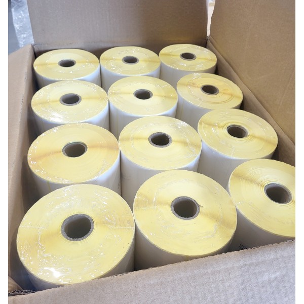 Tanie, logistyczne etykiety termiczne, do drukowania bez użycia kalki. Wyprodukowane przez chińską firmę Likexin z dobrej jakości surowca.