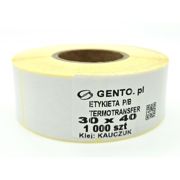 Wysokiej jakości papierowe etykiety termotransferowe (TTR), do drukowania przy użyciu kalki woskowej lub woskowo-żywicznej. Wyprodukowane przy użyciu surowców renomowanych firm: Raflatac i Avery. W odróżnieniu od najtańszych na rynku produktów, nasze etykiety nie pozostawiają w drukarce dużych ilości pyłu papierowego. Mają też bardzo dobry klej, o doskonałych właściwościach. Dzięki temu czyszczenie urządzenia jest rzadsze, a zużycie głowicy drukującej mniejsze.