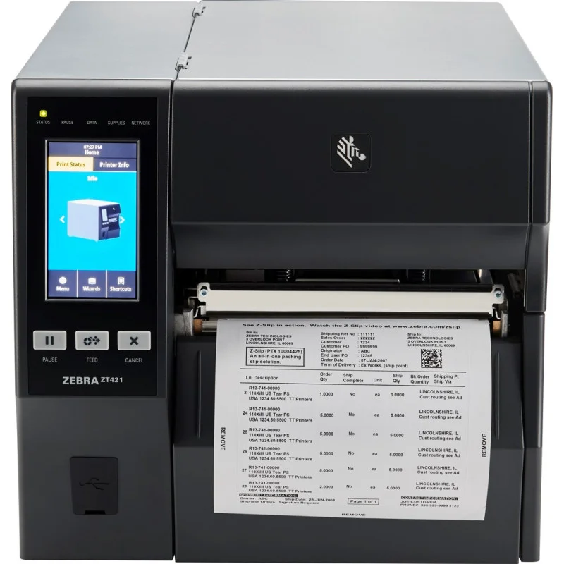 Seria ZT400 bazuje na sprawdzonej w praktyce niezawodności drukarek Z Series™, oferując ulepszenia pod względem szybkości i jakości druku oraz opcji łączności. Zaprojektowane z naciskiem na łatwość obsługi drukarki z serii ZT400 zapewniają kolorowy intuicyjny graficzny interfejs użytkownika LCD z ikonami oraz łatwe ładowanie nośników i taśmy.